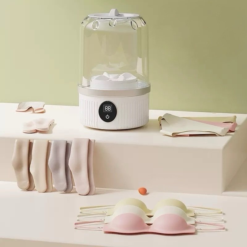 Offrez à vos vêtements délicats un soin optimal grâce à cette mini machine à laver portable au design compact et moderne. Conçue spécialement pour les sous-vêtements, chaussettes, mouchoirs, vêtements de bébé ou même vos masques réutilisables, elle assure un lavage en profondeur tout en douceur grâce à sa turbine à rotation silencieuse.