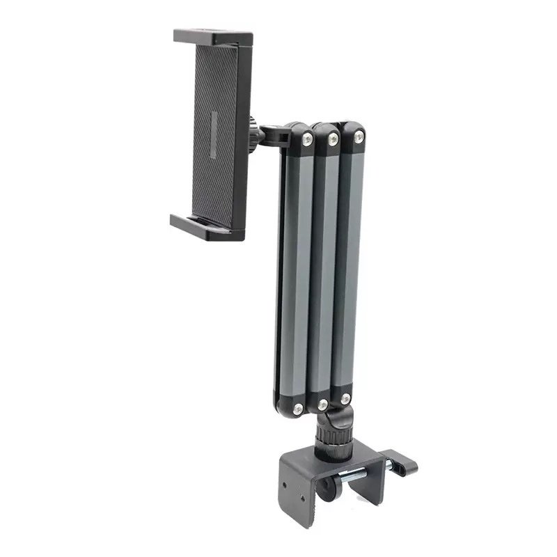 Fixation par pince robuste : Se fixe solidement au bord d’un bureau grâce à une pince en métal réglable, assurant une stabilité optimale.